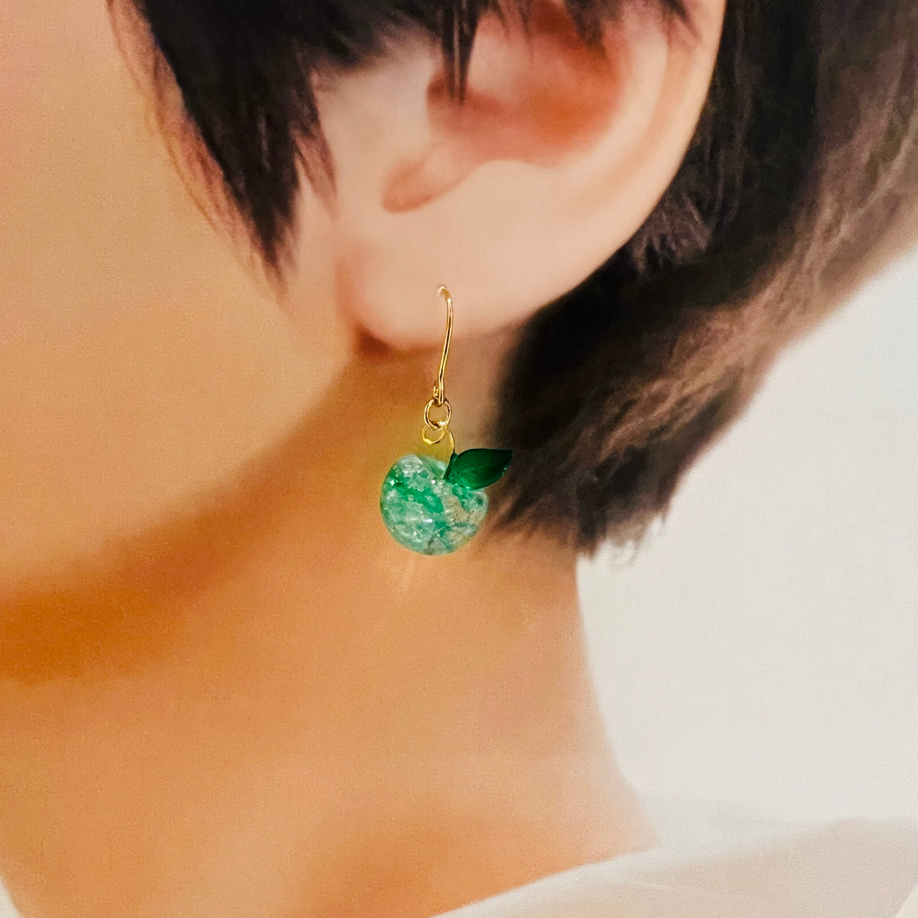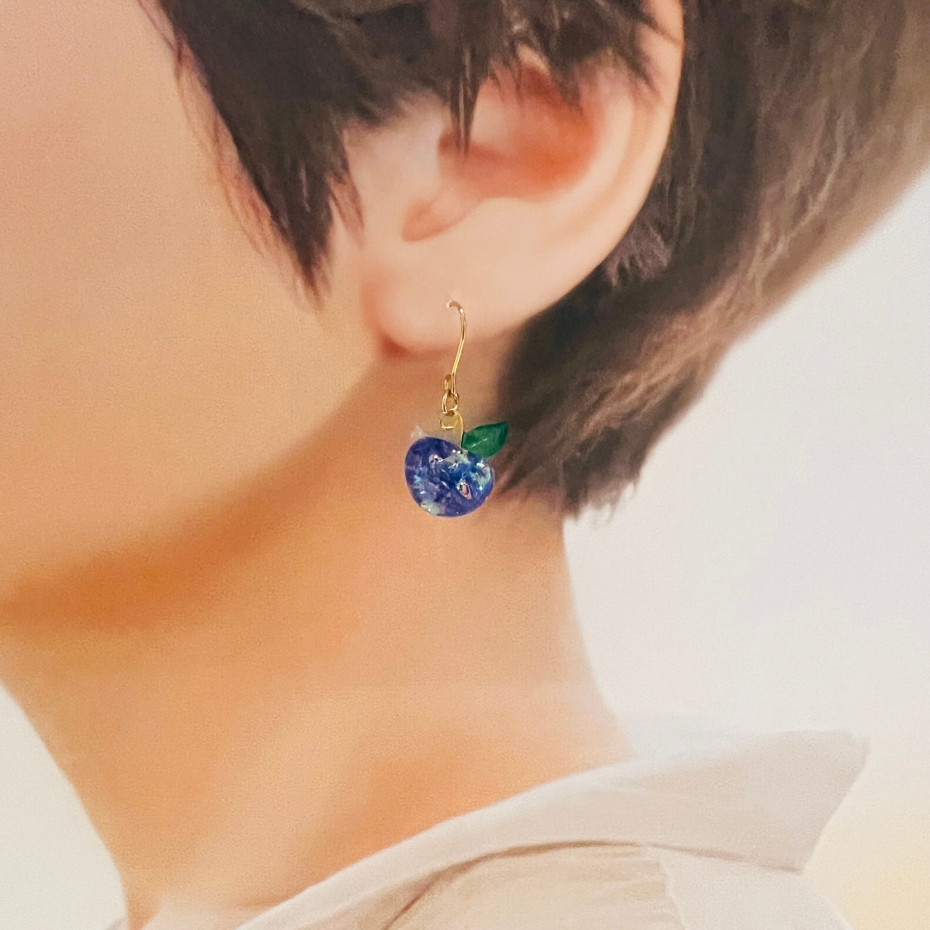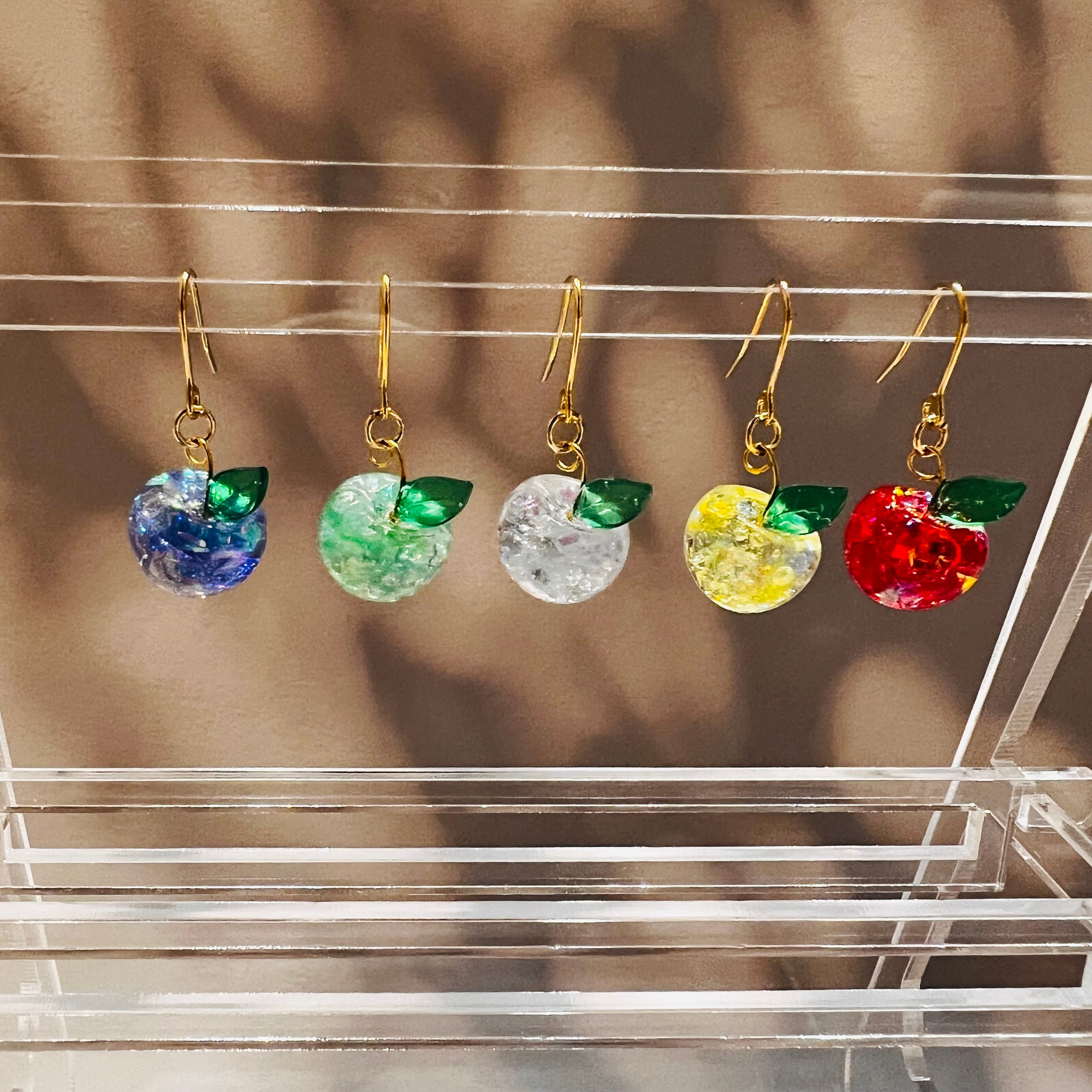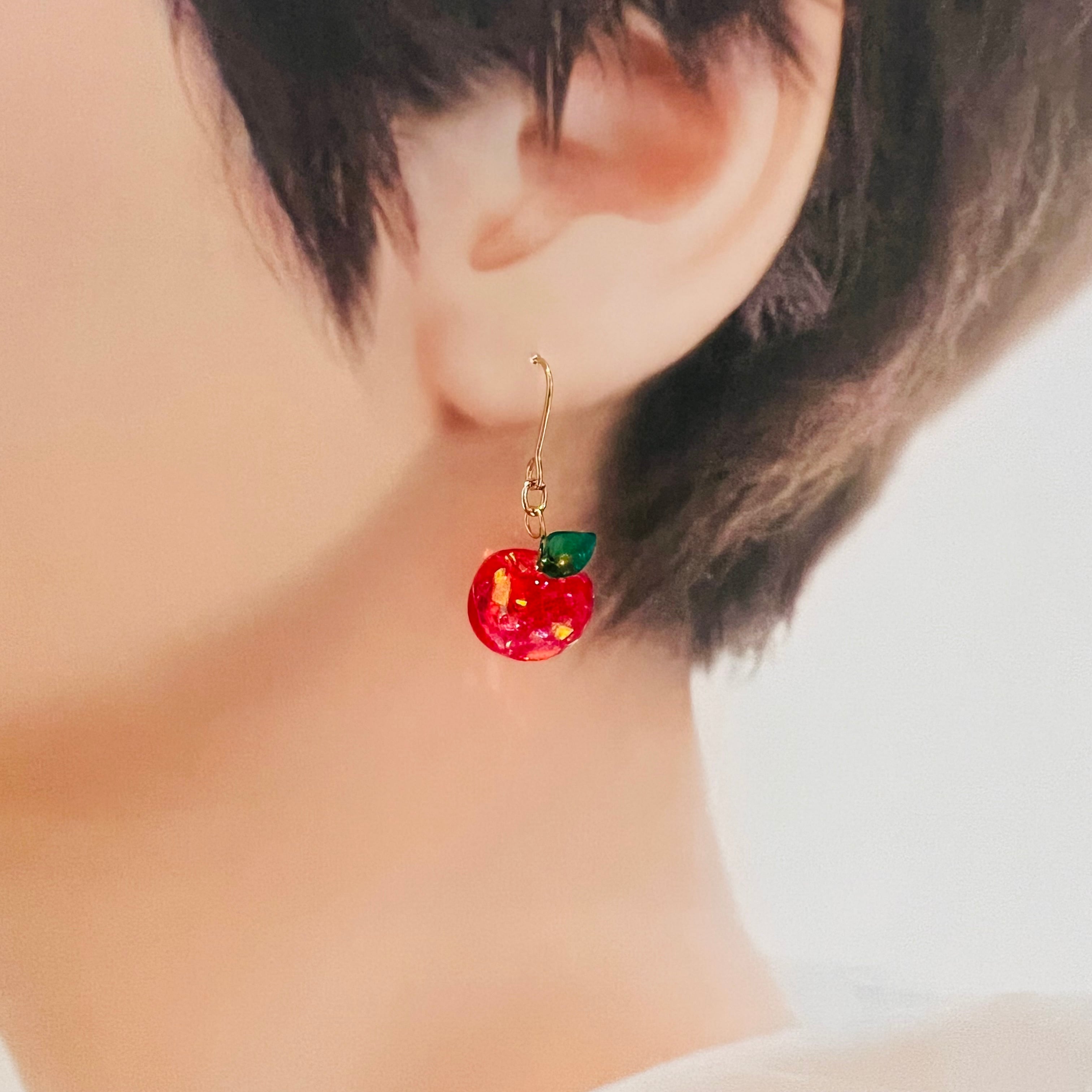 購入時のコメントにて、りんごのお色と、金具のお色(写真はゴールド/シルバーも選べます)をコメントにてお教えください